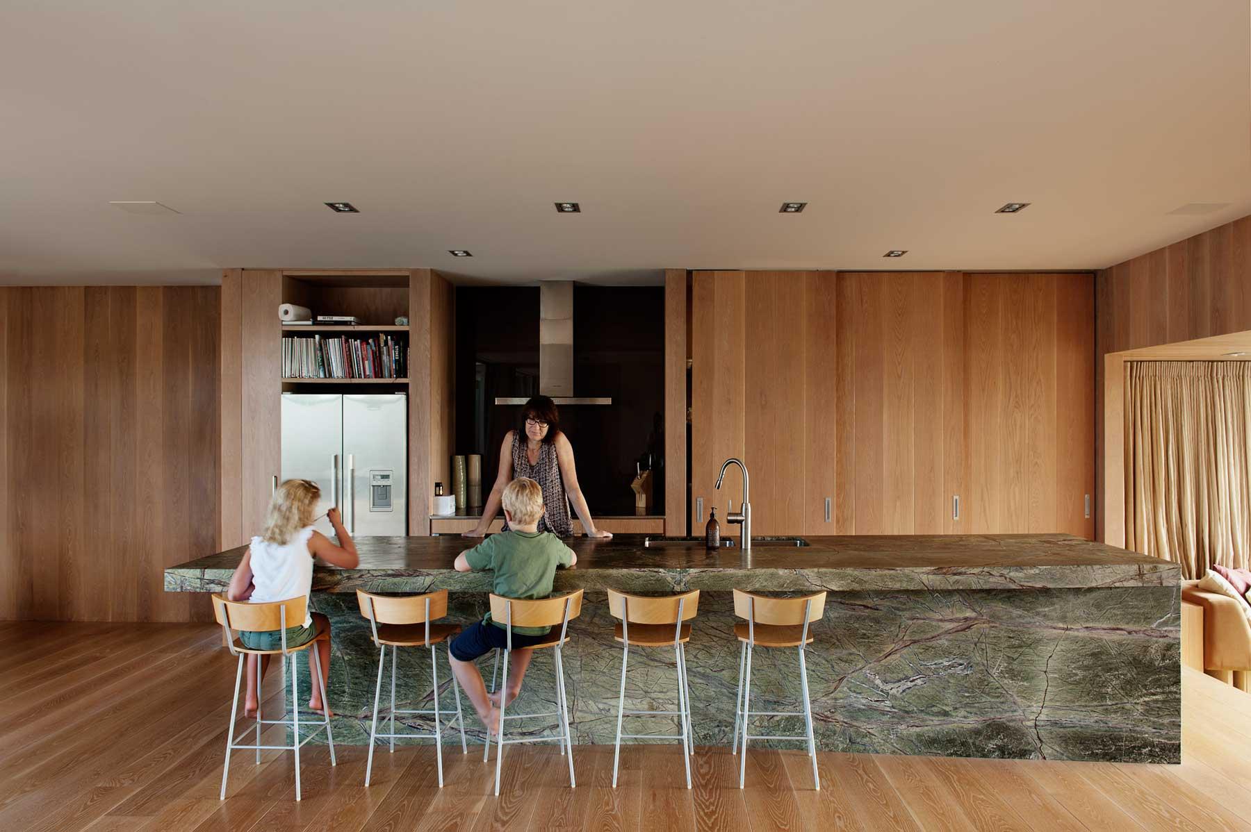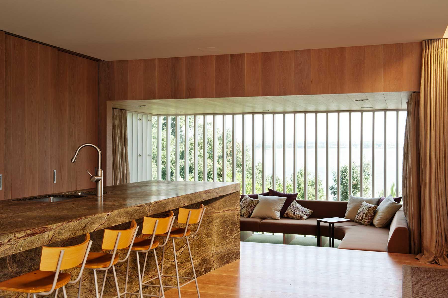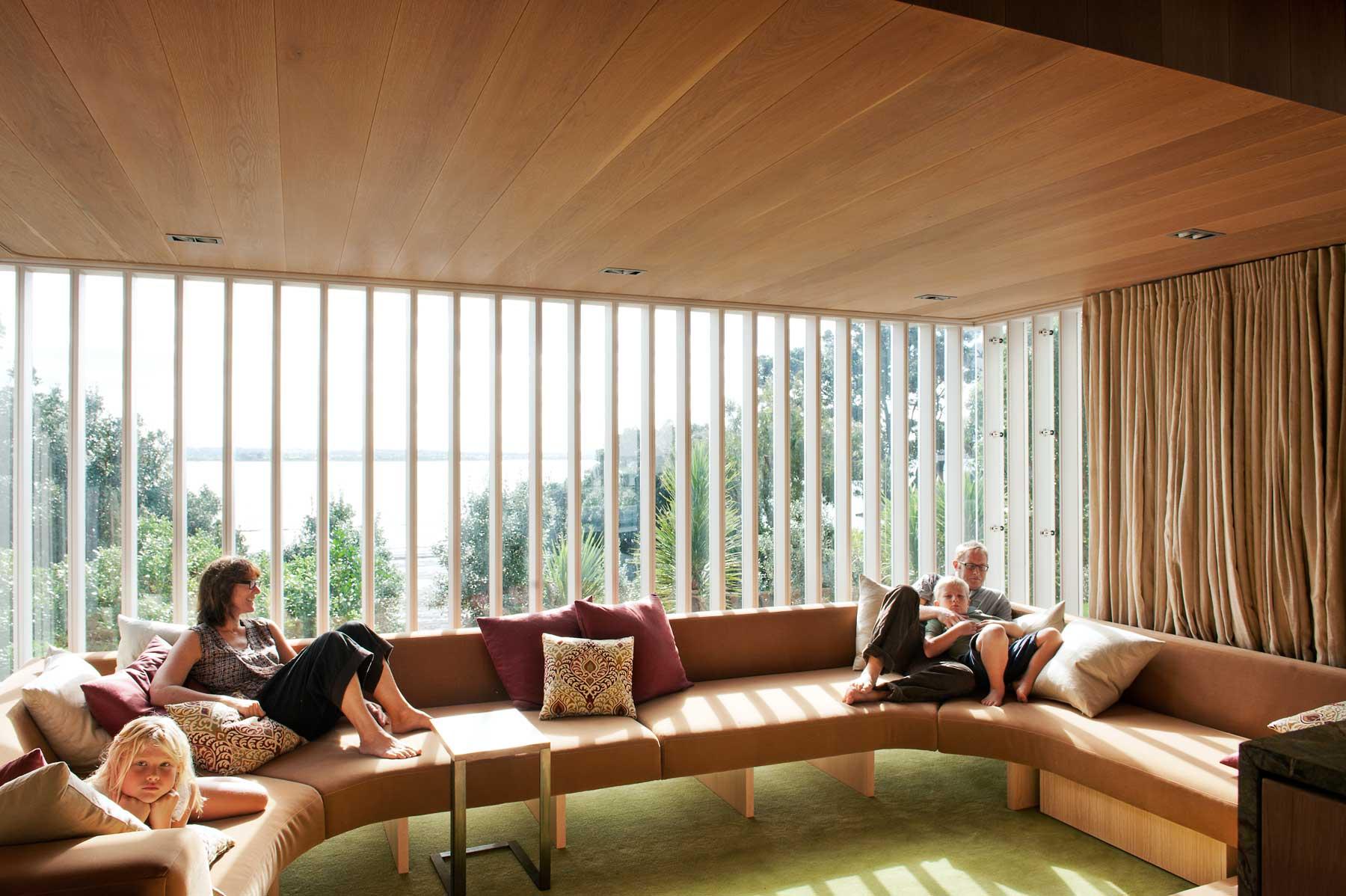A home that sits above the majestic Waitemata Harbour, looking west over the Waitakere Ranges. A young family determined to nuture and treasure its growth by creating a rich courtyard with a pool and and entrance portal under the main bedroom.